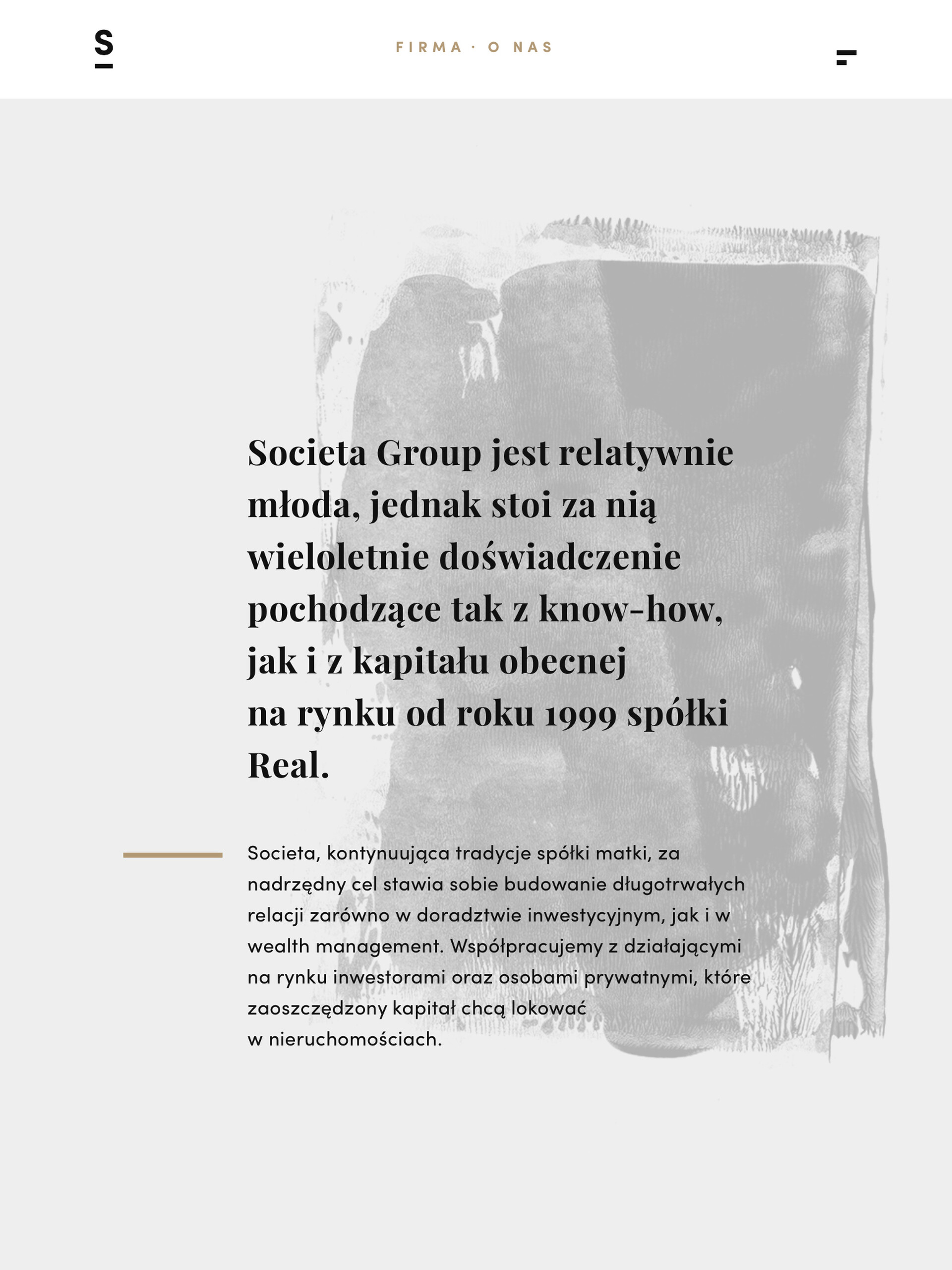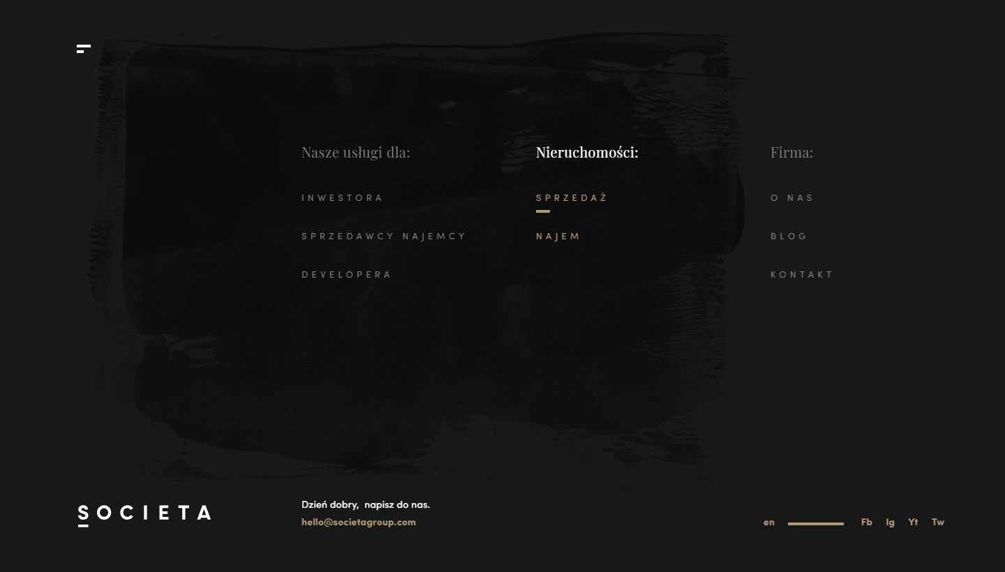 Societa Group to zespół ekspertów odważnie działających na rynku nieruchomości. Grupa docelowa marki to segment premium. Główną potrzebą z jaką Societa zwróciła się do nas było zbudowanie responsywnego serwisu internetowego, prezentującego ofertę i oddającego charakter marki. Strona w założeniach klienta miała mieć charakter wizerunkowy.